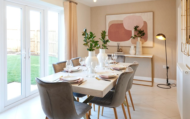 A 4 bedroom detached home with integral single garage, offering spacious family living. Its open-plan kitchen and dining space with French doors forms the heart of the home.