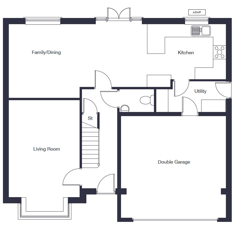 *ASHP - Air Source Heat Pump. These floor plans and images are for guidance and illustrative purposes only and do not form part of any contract. All room sizes are approximate to maximum dimensions and some plots may be subject to additional gable or bay windows. Please ask our Sales Advisor for details on specification and plot specific street scenes.