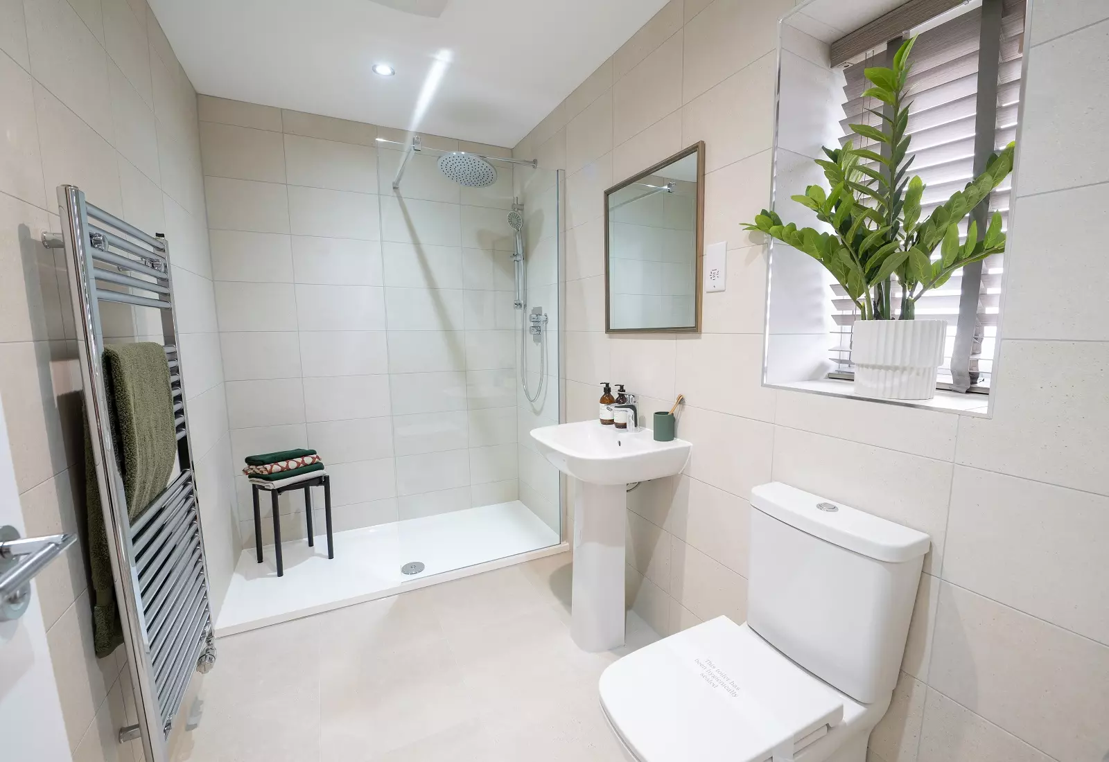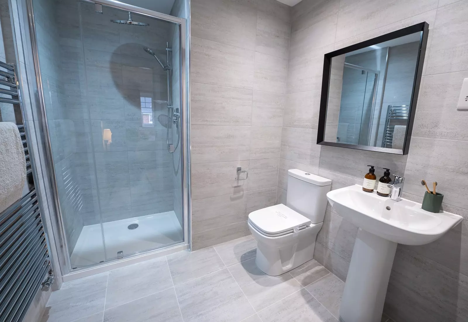 - Porcelanosa tiled en suite