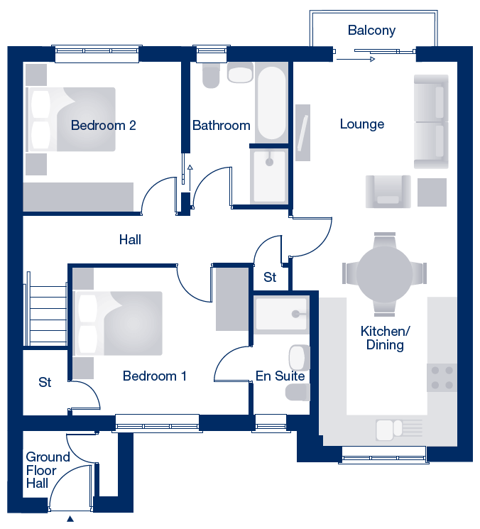 The Ardington is a 2 bedroom first-floor apartment that blends modern design with functionality. The living and dining areas connect to the kitchen and open onto a private balcony, perfect for relaxed moments or entertaining.
