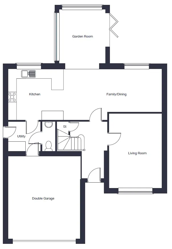 A 5 bedroom detached home with an integral double garage and garden room, offering generous space for family living. Elegant design and flexible interiors make it a home of style and comfort.
